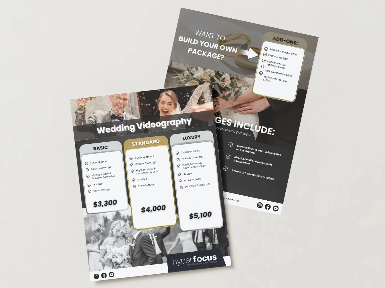 Easy build your own package to meet YOUR budget. From luxury, to social media packages, we offer it all.